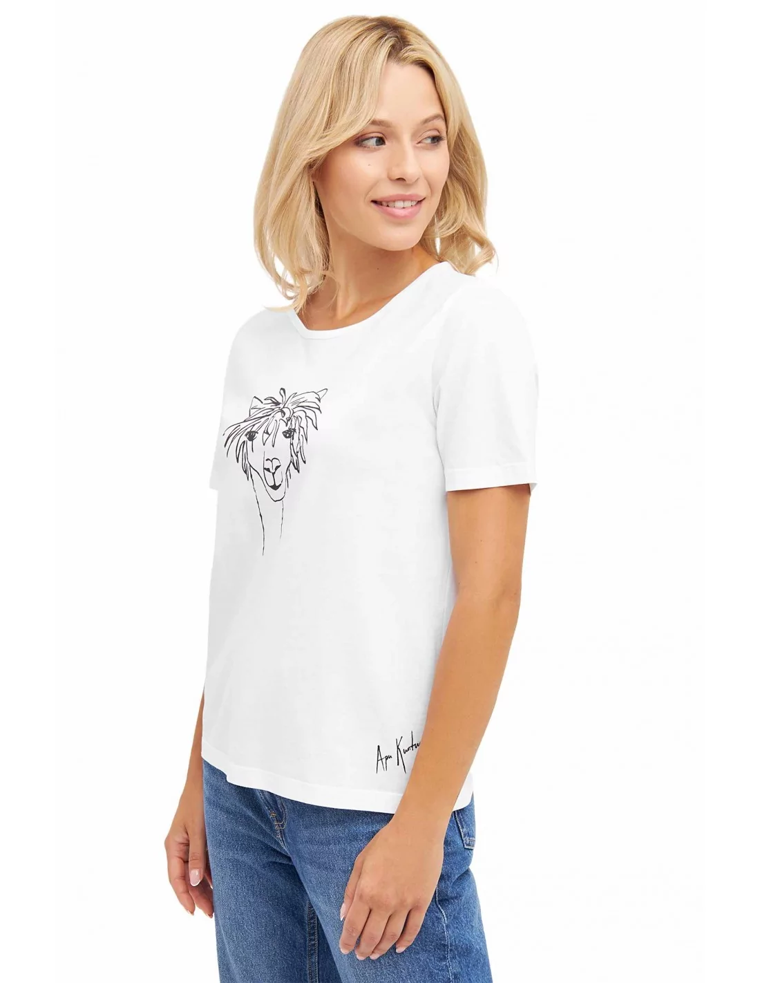 Damen T-Shirt RASSI mit Alpaka-Motiv aus 100% Bio-Pima-Baumwolle