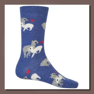 Dezente, glatt gestrickte Socken mit zauberhaftem Motiv: Alpaka-Mama mit Kind!